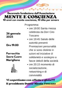La scelta di celebrare questo anniversario presso la parrocchia del Sacro Cuore di Marigliano non è casuale. Questa comunità si è sempre dimostrata accogliente e solidale verso le iniziative di Mente e Coscienza, rappresentando un contesto ideale per ampliare ulteriormente il raggio d’azione dell’associazione sul territorio.